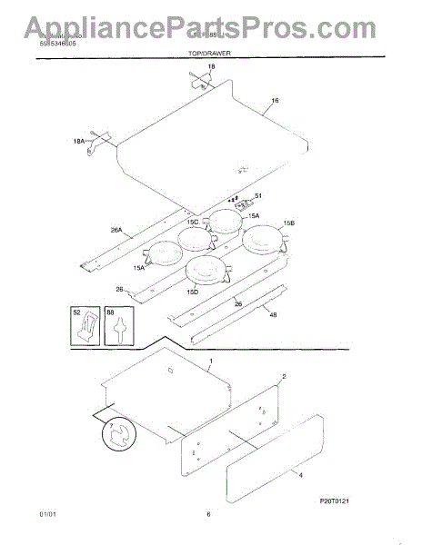 The Rear Drawer Glide is an OEM part for Frigidaire ovens and ranges. It is designed to provide smooth movement for the oven's rear drawer. The rear drawer glide allows the drawer to slide in and out with ease, providing convenient access to storage space or broiler pans. This is the glide that attaches to the rear of the oven drawer. For front glide that attaches to the body use 3051162. Two front and two rear are used for each stove. One for each corner.