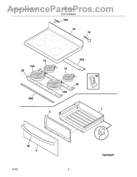 Parts for Frigidaire FEFL67DCD: 07 - Top / Drawer Parts