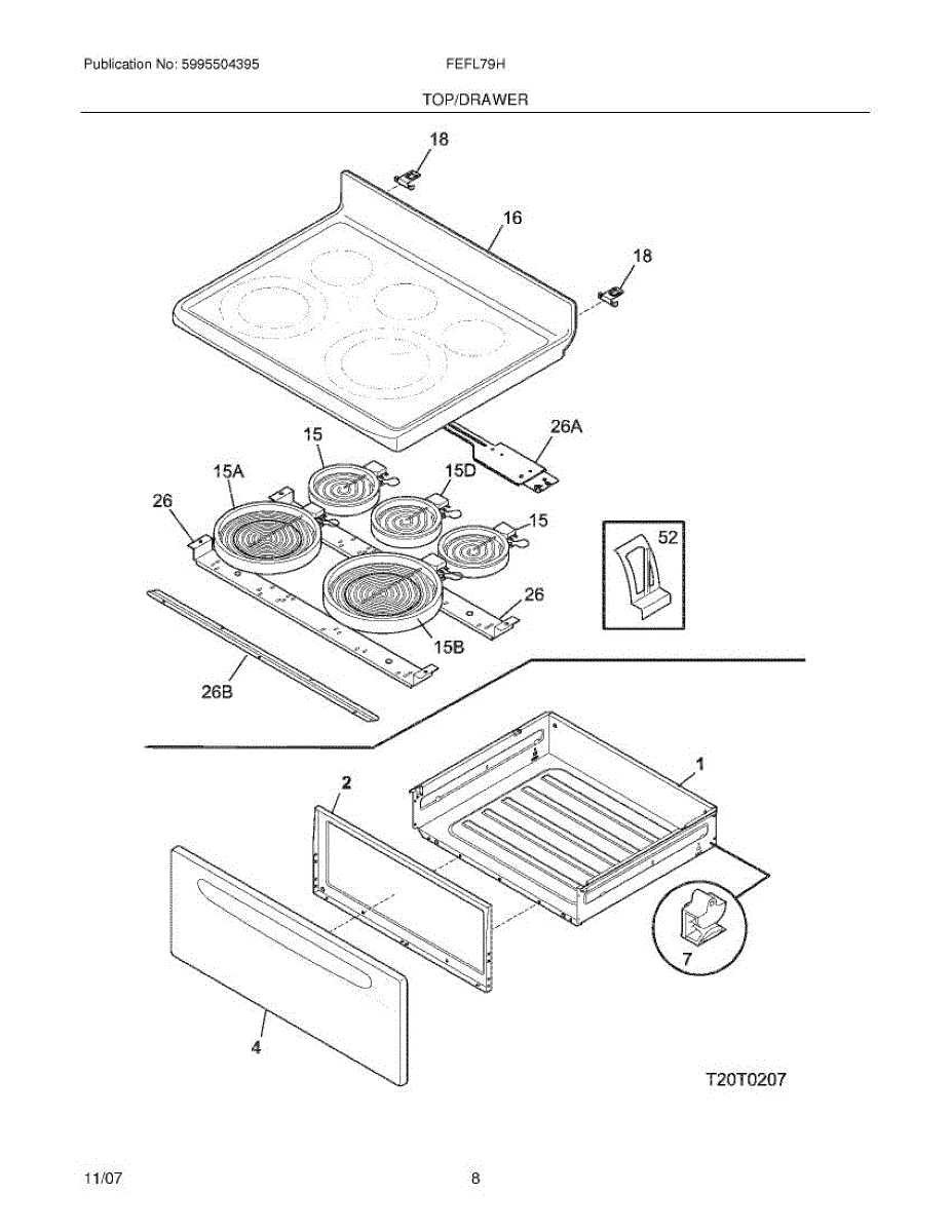 Parts for Frigidaire FEFL79HQA: 07 - Top / Drawer Parts