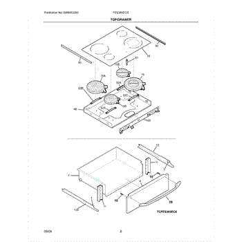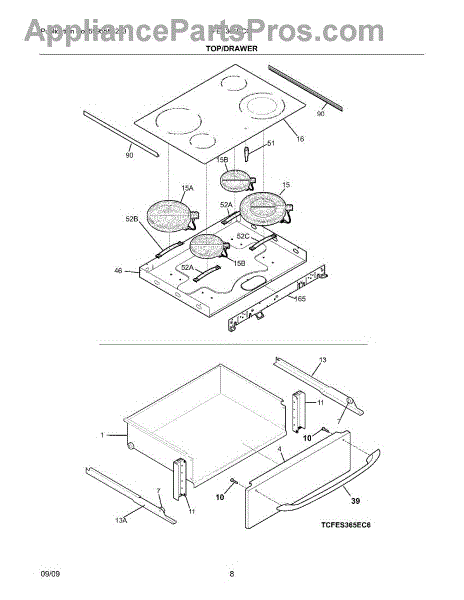 The Surface Element is an OEM replacement part for Frigidaire electric ranges, designed to provide efficient and even heating for cooking on the stovetop. This component is a radiant surface element commonly seen on glass and ceramic cooktops. 8 inch, 2200 watt