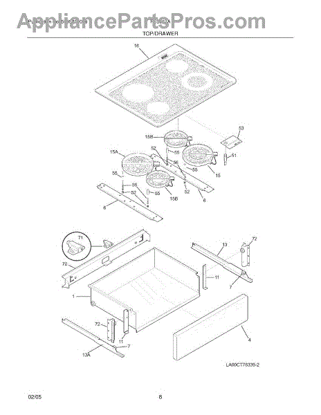 This spacer positions and supports appliance panels or components to maintain correct alignment and clearance. Replacing a worn or missing spacer restores proper fit and helps eliminate rubbing and misalignment. What it does: