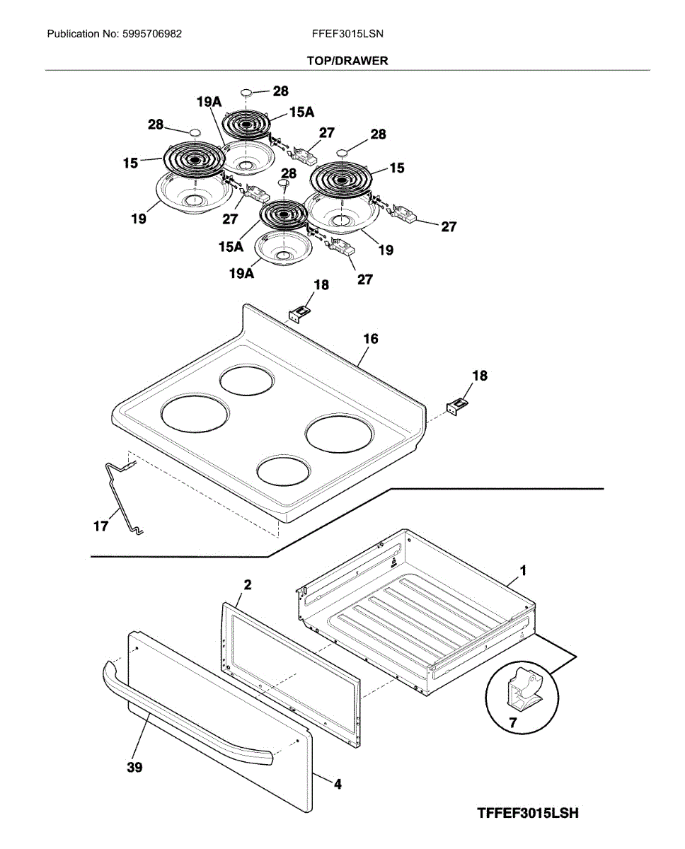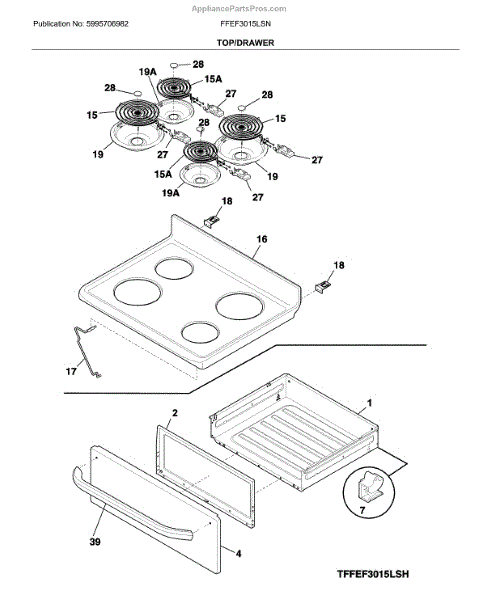 This is a Frigidaire main top for electric ranges. It sits beneath and holds the range's heating elements. If this part is damaged, it's usually obvious. It may dent or in some extreme cases, rust, and should be replaced if it's no longer able to hold heating elements.Before installing this part, make sure that power to the stove is cut, and do not begin repairs until the range is completely cool. A screwdriver, nut driver, and small dowel rod may be needed to install this part. Start by removing each heating element and drip pan. The old cooktop should be held in place with a number of screws or mounting brackets, the first of which may need to be accessed from inside the oven. Mounting hardware must be removed from the old cooktop and installed in the new one before putting the new cooktop in place.This is a genuine OEM part compatible with ranges from Frigidaire brands, including Electrolux, Frigidaire, Gibson, Kelvinator, Westinghouse, and others. This product includes no additional hardware.