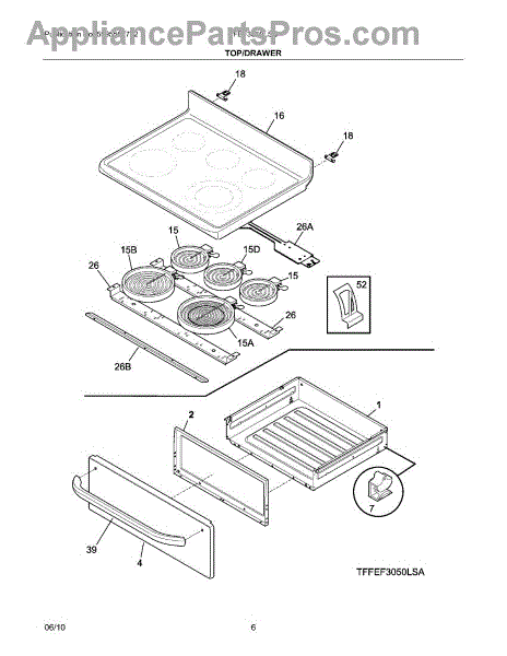 Parts for Frigidaire FFEF3050LSC: 07 - Top / Drawer Parts