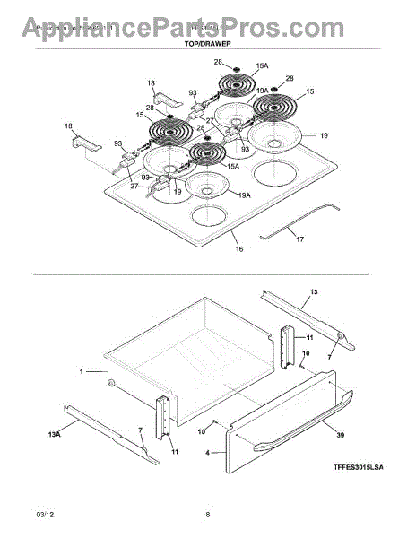 Parts for Frigidaire FFES3015LSE: 07 - Top / Drawer Parts