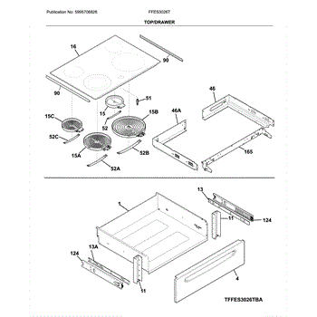 Parts for Frigidaire FFES3026TWD: Top / Drawer Parts