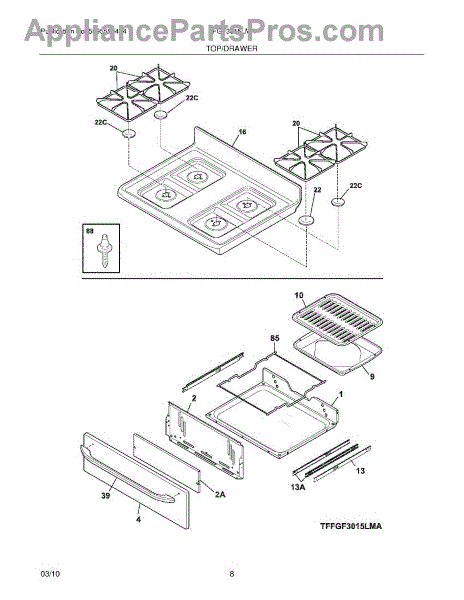 Parts for Frigidaire FFGF3015LMA: 09 - Top / Drawer Parts