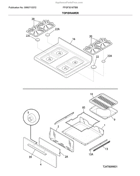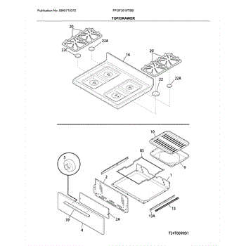 This main top is the upper cooktop panel that covers and protects the range's burners and internal components while providing a stable surface for cookware. It restores the cooktop's appearance and containment of spills. What it does: