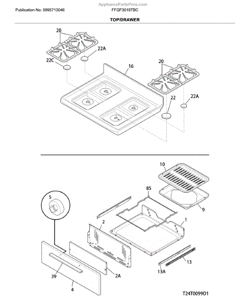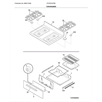 This main top is the upper cooktop panel that covers and protects the range's burners and internal components while providing a stable surface for cookware. It restores the cooktop's appearance and containment of spills. What it does: