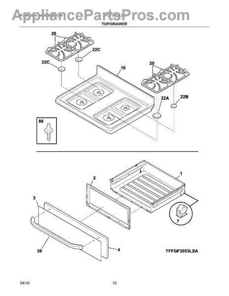 Parts for Frigidaire FFGF3053LSB: 09 - Top / Drawer Parts