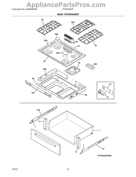 This main top assembly is the cooktop surface that provides a finished work area and mounting surface for burners and controls. Replacing a damaged top restores a safe, even surface and improves appliance appearance. What it does: