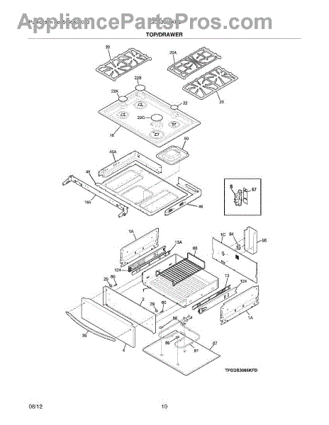 This main top assembly replaces the cooktop surface to restore a flat, secure mounting area for burners and controls. It helps improve appearance and prevents food and spills from entering the cabinet below. What it does: