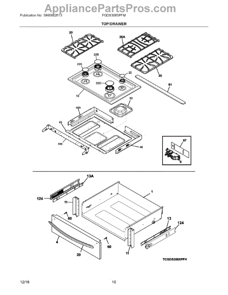This main top assembly replaces the cooktop surface to restore a flat, secure mounting area for burners and controls. It helps improve appearance and prevents food and spills from entering the cabinet below. What it does: