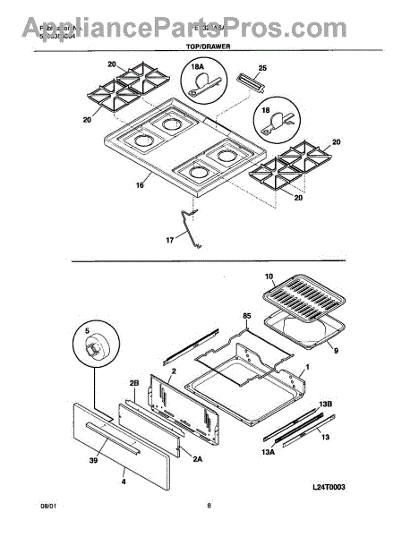 Parts for Frigidaire FGF316AQA: 09 - Top / Drawer Parts