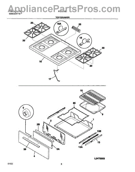 Parts for Frigidaire FGF316BSA: 09 - Top / Drawer Parts