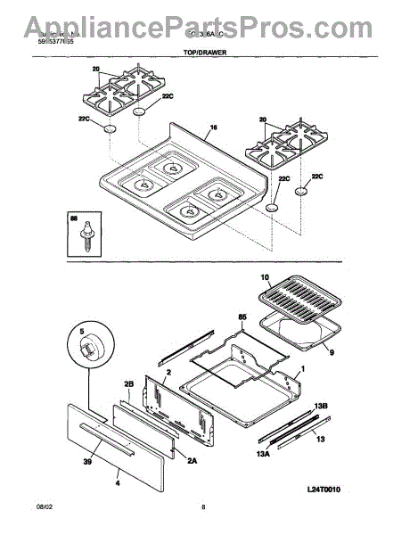 Parts for Frigidaire FGF326ASC: 09 - Top / Drawer Parts