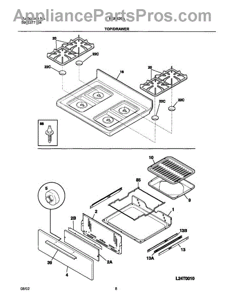 Parts for Frigidaire FGF326AWA: 09 - Top / Drawer Parts