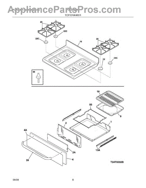 This main top is the cooktop surface panel that supports burners and cookware and protects internal range components from spills and debris. It restores a flat, secure cooking surface and helps keep the range easier to clean. What it does: