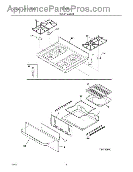 This main top is the cooktop surface panel that supports burners and cookware and protects internal range components from spills and debris. It restores a flat, secure cooking surface and helps keep the range easier to clean. What it does: