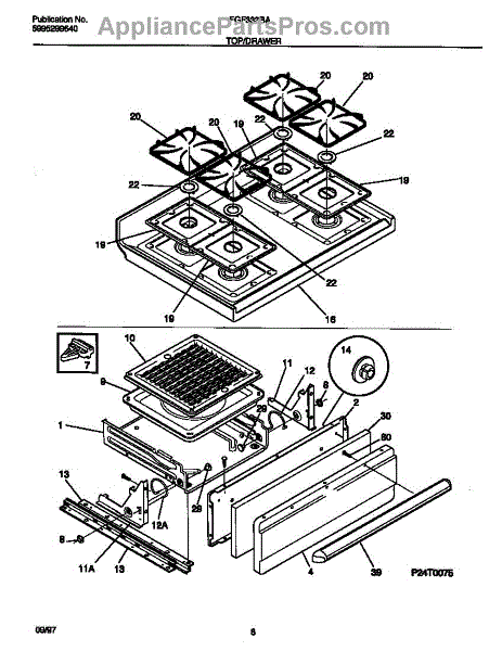 The Square Gas Drip Pan is an OEM part for Frigidaire gas ranges. This component is designed to sit beneath the burner to catch spills, drips, and splatters during cooking. It measures 9” wide by 9” deep.