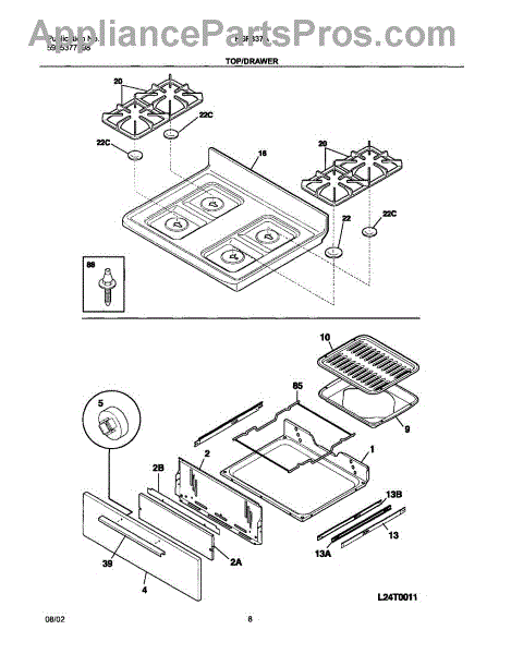 The Broiler Pan Assembly is an OEM part for Frigidaire ranges and ovens. This part includes both the broiler pan and the grill rack, designed to catch drippings and promote even cooking when broiling foods. This assembly includes pan and insert.
