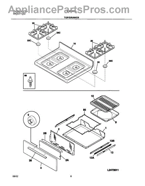 The Broiler Pan Assembly is an OEM part for Frigidaire ranges and ovens. This part includes both the broiler pan and the grill rack, designed to catch drippings and promote even cooking when broiling foods. This assembly includes pan and insert.