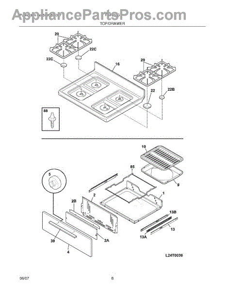 Parts for Frigidaire FGF337GUB: 09 - Top / Drawer Parts