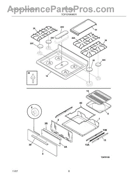 The Broiler Pan Assembly is an OEM part for Frigidaire ranges and ovens. This part includes both the broiler pan and the grill rack, designed to catch drippings and promote even cooking when broiling foods. This assembly includes pan and insert.