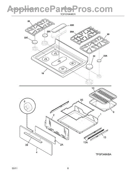Parts for Frigidaire FGF348KBA: 09 - Top / Drawer Parts