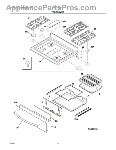 Parts for Frigidaire FGF348KCE: 09 - Top / Drawer Parts