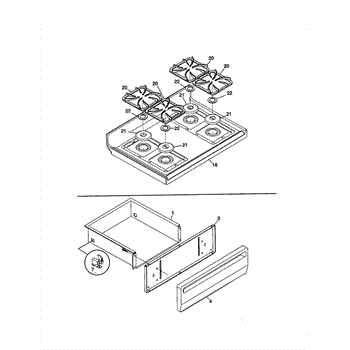 Parts for Frigidaire FGF354BGDD: Top / Drawer Parts