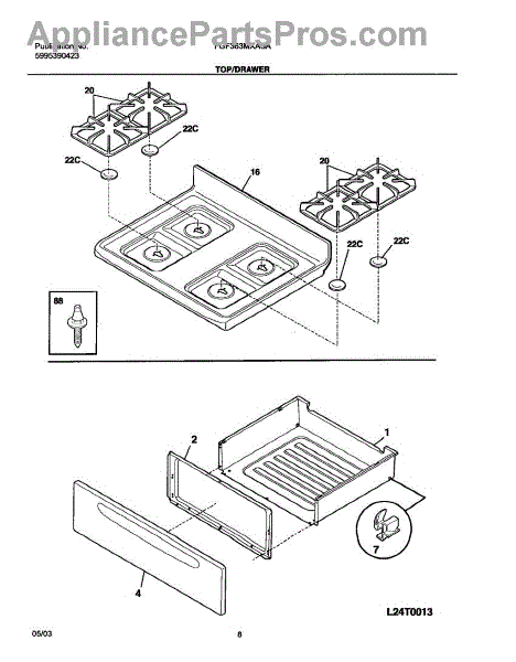 Parts for Frigidaire FGF363MXASA: 09 - Top / Drawer Parts
