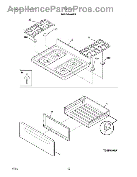 Parts for Frigidaire FGF366EBH: 09 - Top / Drawer Parts
