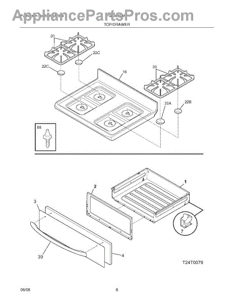Parts for Frigidaire FGF368GMC: 09 - Top / Drawer Parts