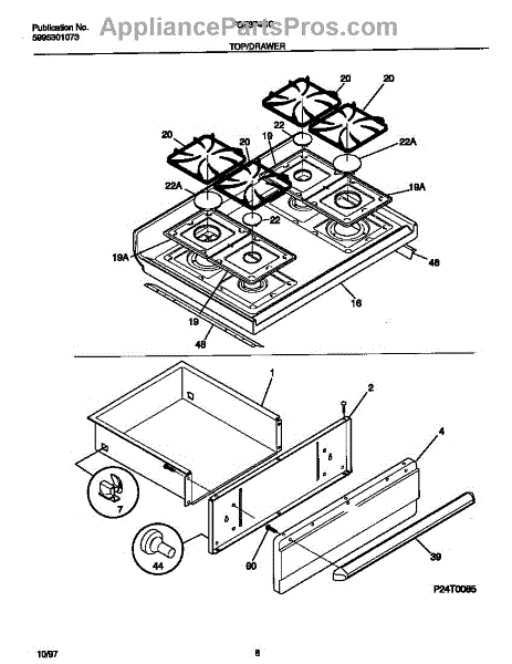 Parts for Frigidaire FGF374CCSJ: 05 - Top / Drawer Parts