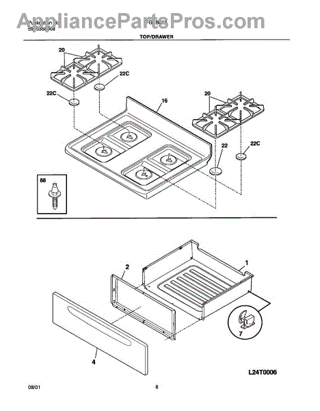 Parts for Frigidaire FGFB66ASB: 09 - Top / Drawer Parts
