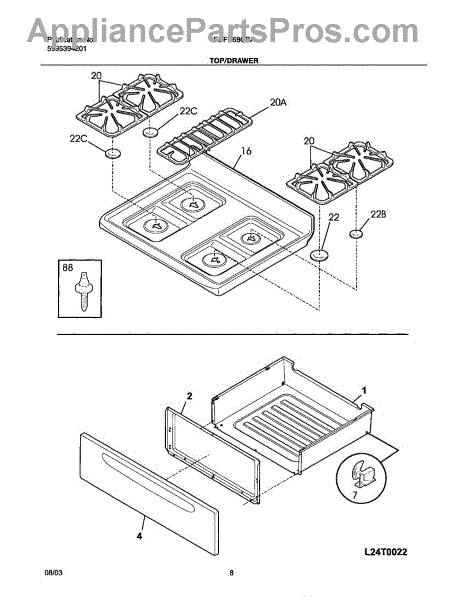 The Rear Drawer Glide is an OEM part for Frigidaire ovens and ranges. It is designed to provide smooth movement for the oven's rear drawer. The rear drawer glide allows the drawer to slide in and out with ease, providing convenient access to storage space or broiler pans. This is the glide that attaches to the rear of the oven drawer. For front glide that attaches to the body use 3051162. Two front and two rear are used for each stove. One for each corner.