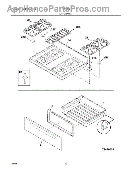 Parts for Frigidaire FGFB75DQC: 09 - Top / Drawer Parts