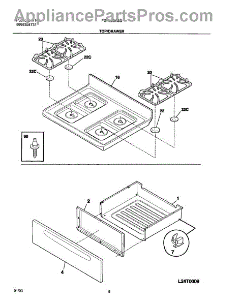 The Rear Drawer Glide is an OEM part for Frigidaire ovens and ranges. It is designed to provide smooth movement for the oven's rear drawer. The rear drawer glide allows the drawer to slide in and out with ease, providing convenient access to storage space or broiler pans. This is the glide that attaches to the rear of the oven drawer. For front glide that attaches to the body use 3051162. Two front and two rear are used for each stove. One for each corner.