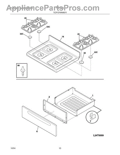 Parts for Frigidaire FGFL77ASJ: 09 - Top / Drawer Parts