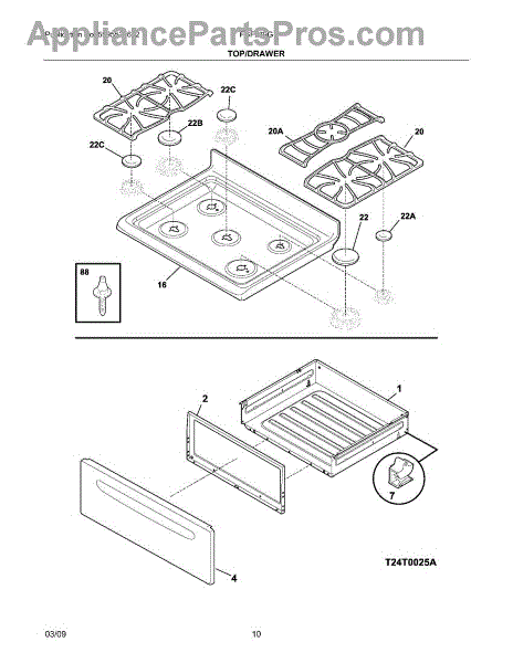 Parts for Frigidaire FGFL79GQE: 09 - Top / Drawer Parts