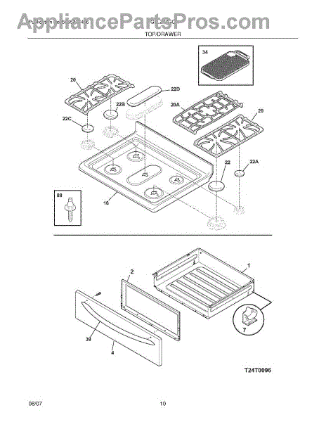 Parts for Frigidaire FGFLZ87GCA: 09 - Top / Drawer Parts