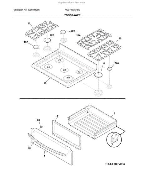 Main top assembly for gas ranges. Provides the cooking surface that supports grates and cookware. Replace if cracked, dented, bent, corroded, or worn.