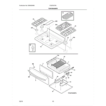Cast iron cooktop grate provides stable support for pots and pans over gas burners. Replace cracked, warped, or missing grates to restore safe cookware placement.
