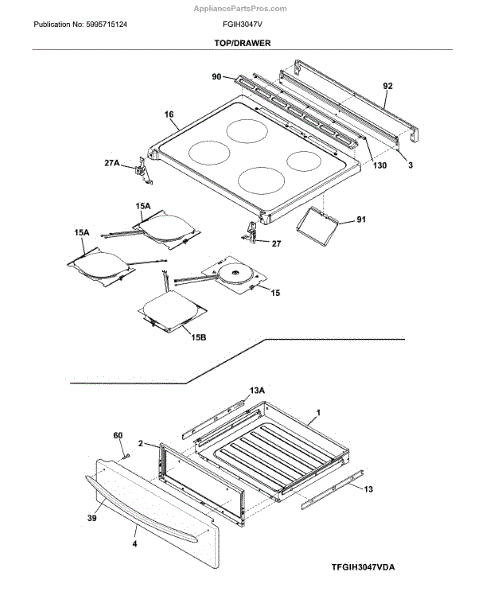 Parts for Frigidaire FGIH3047VFA: Top / Drawer Parts