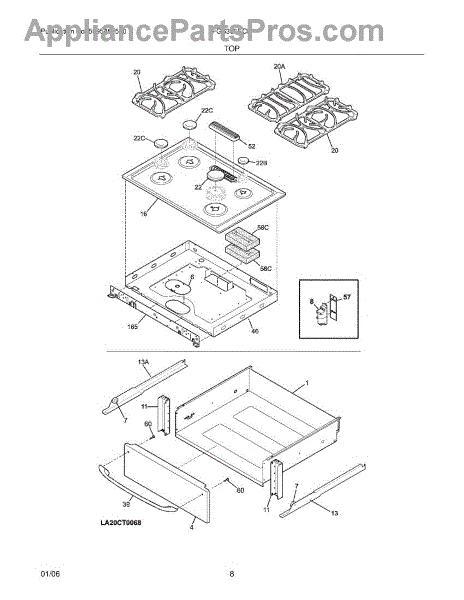 This main top is the cooktop surface panel that covers and supports burners and control components, restoring a clean, level cooking surface and protecting the range interior from spills and debris. What it does