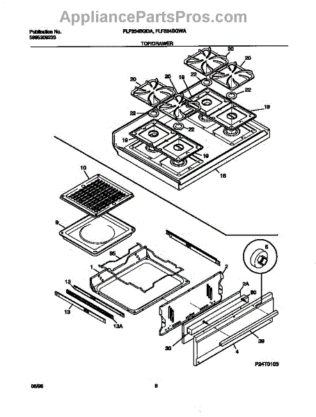 The Square Gas Drip Pan is an OEM part for Frigidaire gas ranges. This component is designed to sit beneath the burner to catch spills, drips, and splatters during cooking. It measures 9” wide by 9” deep.