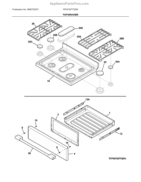 This cooktop grate replaces a damaged or worn stovetop support to restore stable, even cookware placement and safe burner use. It fits over the burner area and keeps pots and pans level during cooking. What it does: