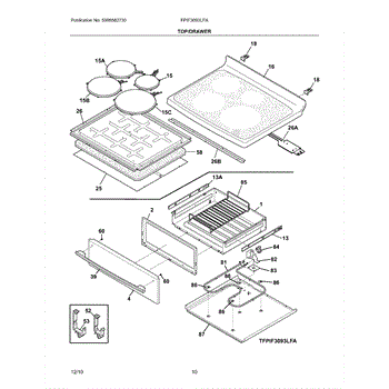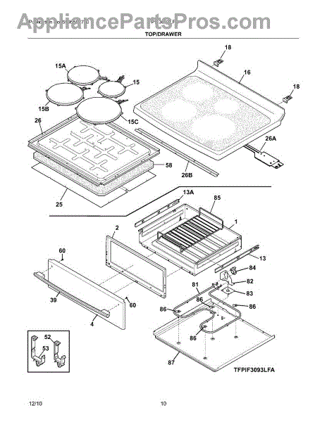 This main top assembly replaces the upper cooktop surface to restore a flat, finished work area and secure the burners and controls. It improves appearance and helps ensure proper fit of grates, burners, and control components. What it does: