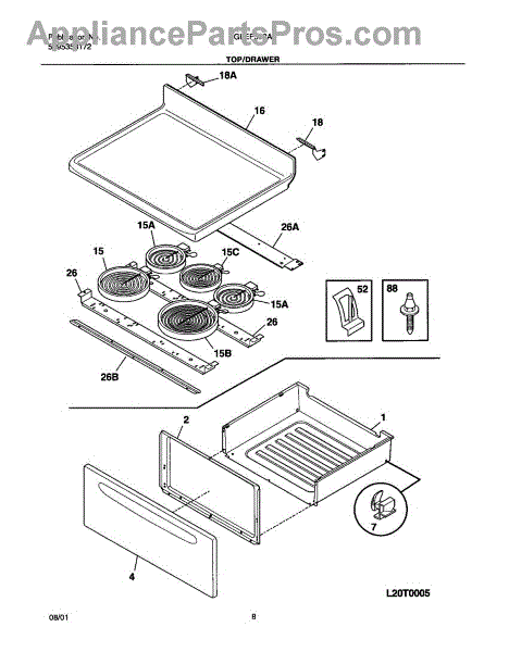 The Surface Element is an OEM replacement part for Frigidaire electric ranges, designed to provide efficient and even heating for cooking on the stovetop. This component is a radiant surface element commonly seen on glass and ceramic cooktops. 8 inch, 2200 watt