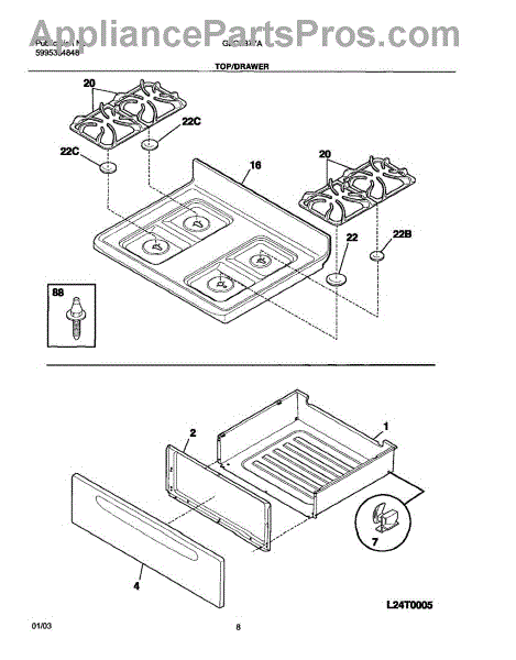 Parts for Frigidaire GLGF377ASG: 09 - Top / Drawer Parts